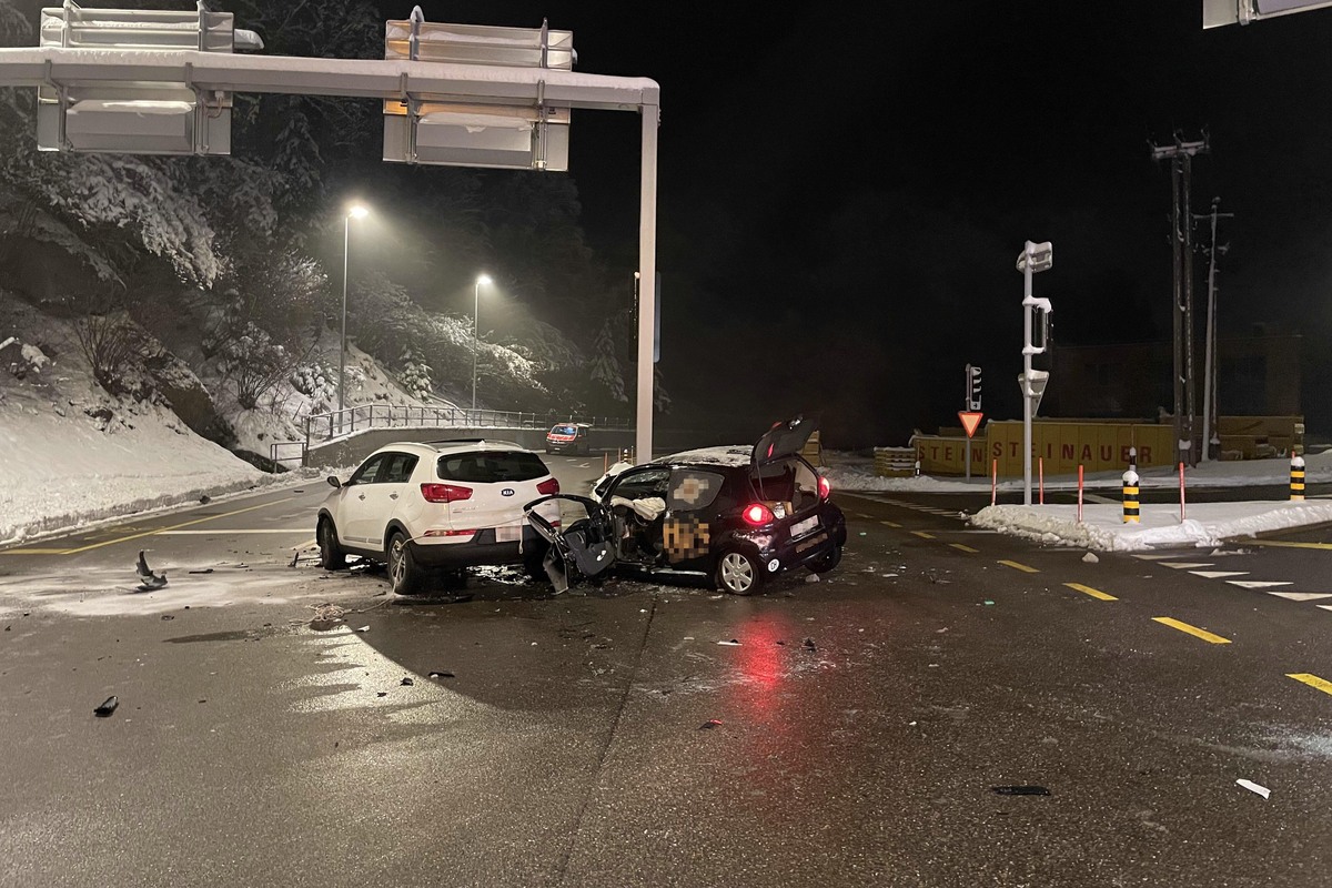Am Dienstagabend, 9. Januar 2024, ist es bei der Lichtsignalanlage Rabennest in Einsiedeln zu einem Verkehrsunfall mit zwei Autos gekommen.