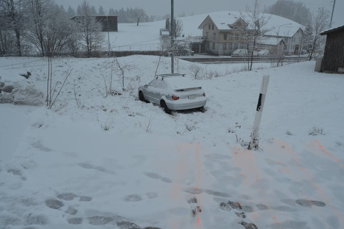 Auf schneebedeckter Strasse verunfallt und zu Fuss abgehauen (Bildquelle: Kantonspolizei Appenzell-Ausserrhoden)