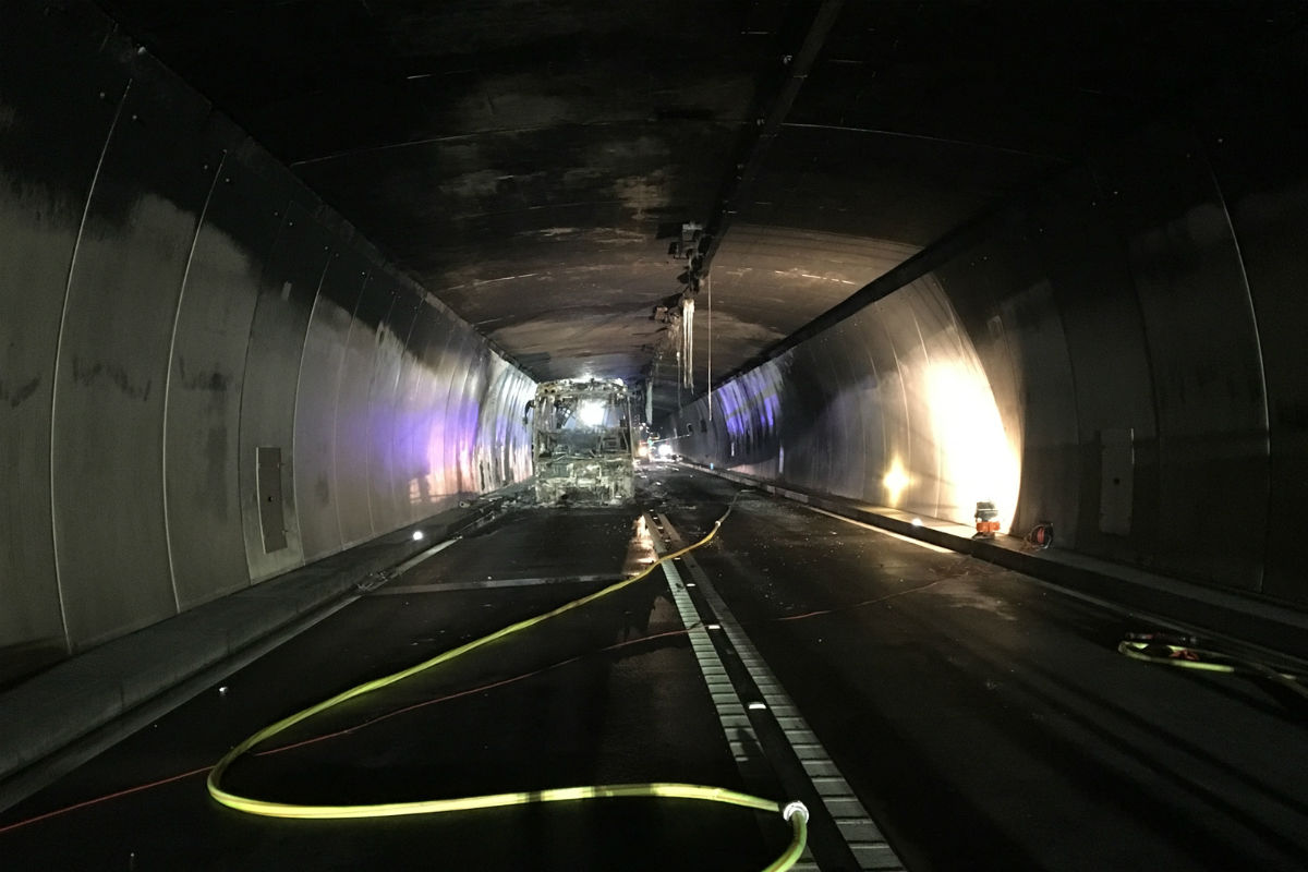 San Bernardino Strassentunnel Car Brand (Bildquelle: Kantonspolizei Graubünden)