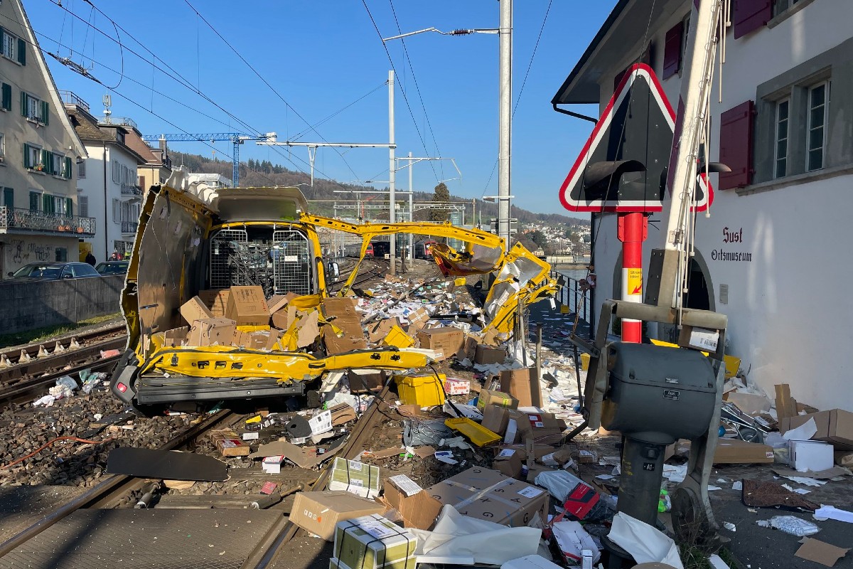 Ein 36-jähriger Mann fuhr mit einem Paket-Lieferwagen auf der Dorfgasse über den Bahnübergang Richtung Ortsmuseum Sust in Horgen. Aufgrund der engen Platzverhältnisse fuhr er kurz nach neun Uhr rückwärts zurück über den Bahnübergang Richtung Zentrum, als sich die Bahnschranken schlossen. Kurz darauf wurde der Lieferwagen von einem Zug der Linie S25 erfasst, der Richtung Zürich gefahren ist. Der Lenker, der zum Zeitpunkt der Kollision noch im Fahrzeug sass, blieb unverletzt. Der Lieferwagen wurde bei der Kollision komplett zerstört; der Inhalt des Lieferwagens weitherum auf der Bahnanlage verteilt. Einzelne Pakete mussten durch die Seepolizei aus dem Zürichsee geborgen werden. An der Bahninfrastruktur entstand erheblicher, an der Zugskomposition unbestimmter Sachschaden.