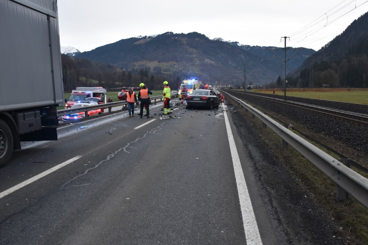 Am Donnerstag ist es auf der Nationalstrasse in Schiers zu einem Unfall zwischen einem Auto und einem Sattelmotorfahrzeug gekommen. Der Autolenker und seine Mitfahrerin verstarben auf der Unfallstelle.