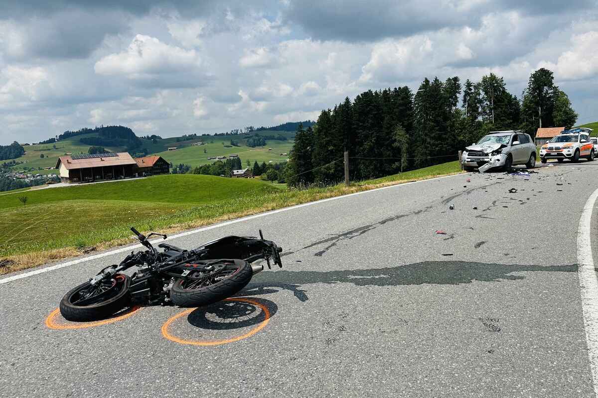 Am gestrigen Freitag, 23.06.2023, kam es in Hundwil zu einer Kollision zwischen einem Motorrad und einem Personenwagen. Der Motorradfahrer wurde dabei schwer verletzt. Die betroffene Strasse wurde für rund drei Stunden gesperrt.