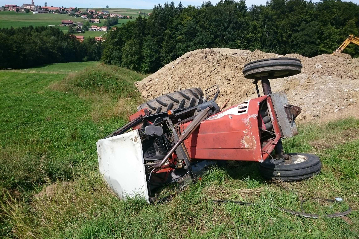 Am Donnerstag, circa 13.10 Uhr, fuhr ein 55-jähriger Mann mit seinem Traktor in Richtung St. Martin. In einer Rechtskurve verlor er - wahrscheinlich infolge nichtangepasster Geschwindigkeit - die Kontrolle über sein Fahrzeug. Der Traktor überschlug sich und blieb schliesslich auf der Seite liegen.