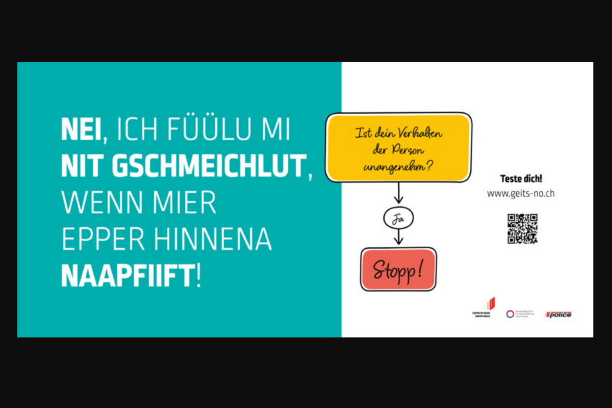 Positive Bilanz nach einem Jahr «Geits no?», der ersten kantonalen Kampagne zur Sensibilisierung gegen Belästigung im öffentlichen Raum. Ein Teil der Kampagne bestand aus Social Media Posts und öffentlichen Plakaten, ein anderer aus der Lancierung der Website geits-no.ch, die 5'500-mal aufgerufen wurde. Mehr als 2’500 Personen haben das Quiz auf dieser Website gemacht, mit dem sie ihr Verhalten testen konnten. Doch auch das öffentliche Gemeinwesen hat sich für die Kampagne interessiert.