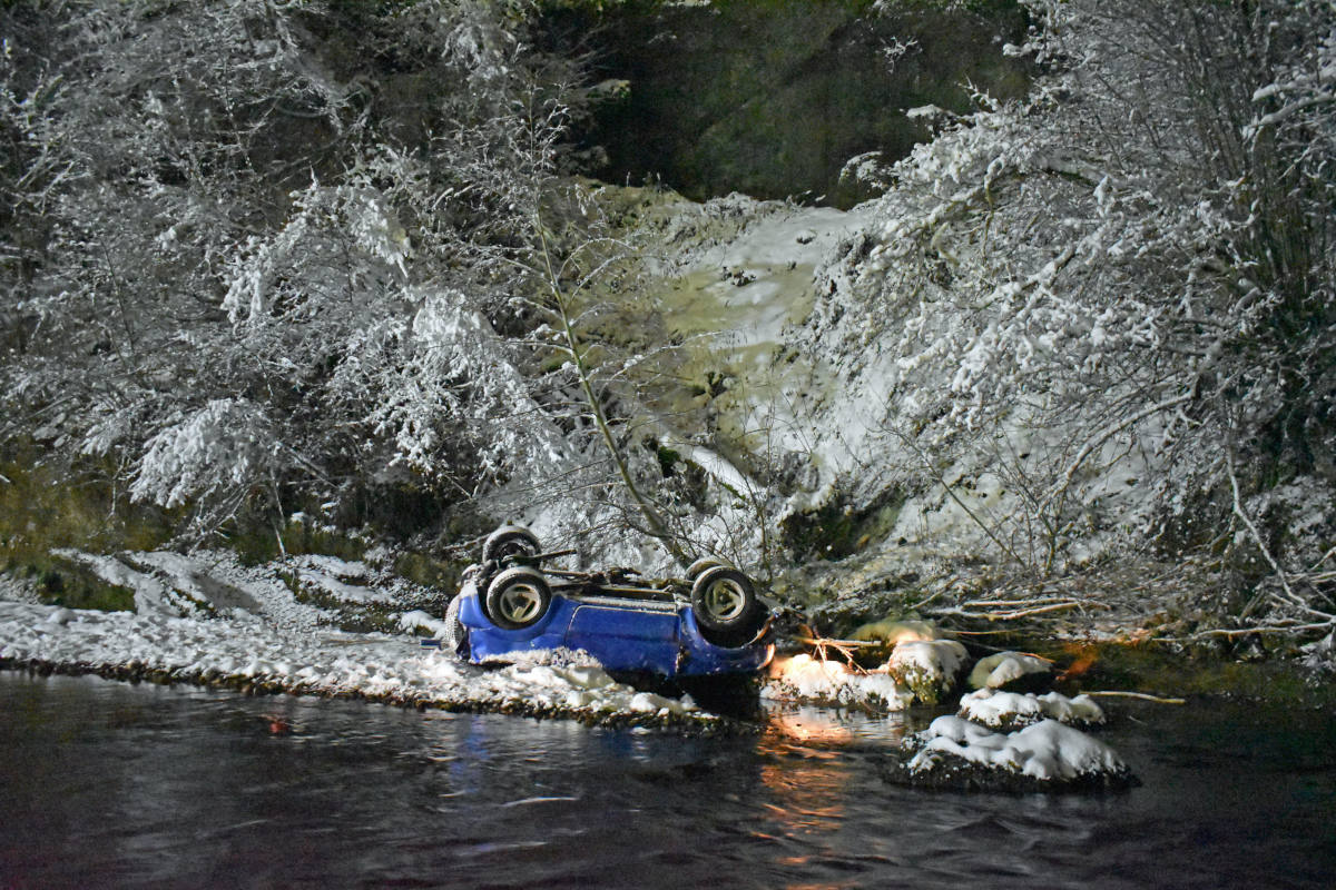 Am Samstag, 10. Dezember 2022, 22:15 Uhr, kam im Gebiet Lindeweidli ein Autofahrer auf der schneebedeckten Fahrbahn von der Strasse ab, geriet ins angrenzende Wiesland und kam auf der linken Fahrzeugseite liegend in einem Bach zum Stillstand. Verletzt wurde niemand. Die Höhe des Sachschadens ist noch unbekannt.