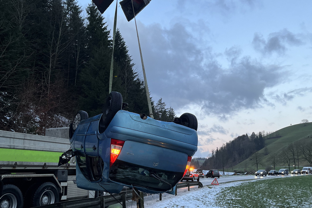Am Montag (22. Januar 2024, ca. 22:00 Uhr) fuhr ein Autofahrer auf der Mettlenstrasse von Emmen in Richtung Inwil. Aus noch ungeklärten Gründen geriet das Auto auf der mutmasslich vereisten Strasse ins Schleudern, rutschte ins Wiesland und kippte dann aufs Dach. Verletzt wurde beim Unfall niemand. Der Sachschaden beläuft sich auf ca. 15'000 Franken.