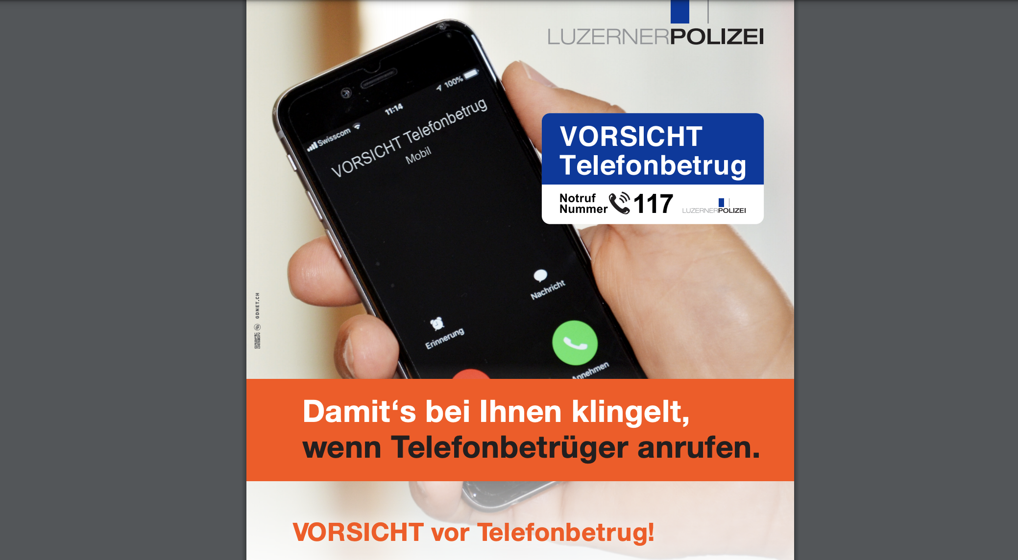 Letzte Woche, am 14. April, konnte die Luzerner Polizei einen mutmasslichen Betrüger festnehmen. Er dürfte Mitglied einer Gruppierung sein, welche mit Telefonbetrügen ältere Menschen zu Bargeldübergaben drängen. Die Polizei warnt vor Telefonbetrügern.