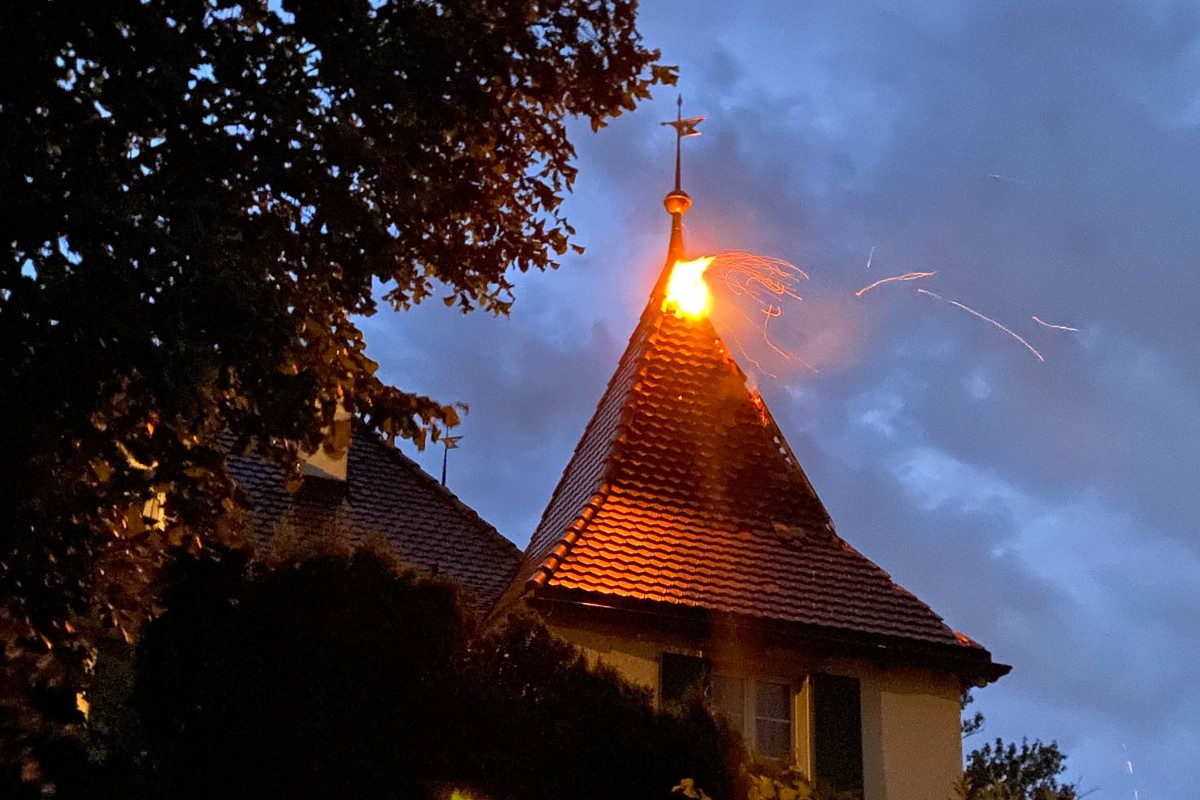 Am Dienstag, 5. Juli 2022, brach um 4.30 Uhr in einem Dachstock in der Rütiwies in Altendorf nach einem Blitzeinschlag Feuer aus. Die Feuerwehr Altendorf konnte den Brand rasch löschen.