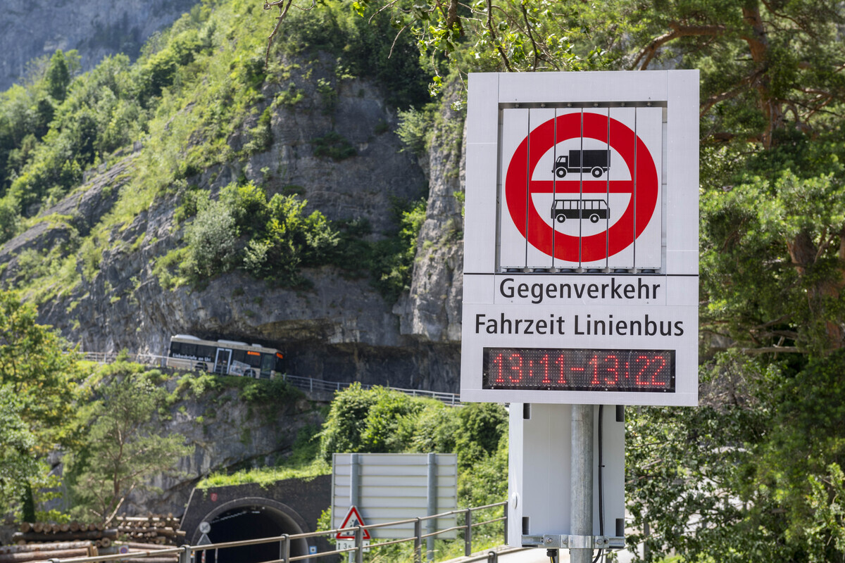 Der öV ins Tal wurde in den vergangenen Jahren stark ausgebaut und fährt im Stundentakt. Die digitale Anzeige soll helfen, dass es zu weniger heiklen Kreuzungsmanövern kommt. Automobilisten sehen auf einen Blick, wann der öV-Kurs unterwegs ist, und sie können sich entsprechend verhalten.