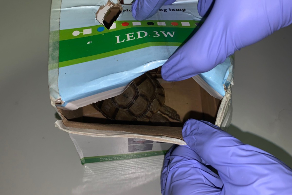 Kontrolle in Basel - Zwei geschützte Schildkröten in Kartonschachtel mit dabei