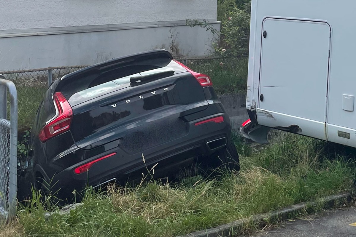 Das Auto fuhr über den Parkplatz hinaus, touchierte dabei ein parkiertes Wohnmobil und fuhr in ein Bachbett. Verletzt wurde beim Unfall niemand.