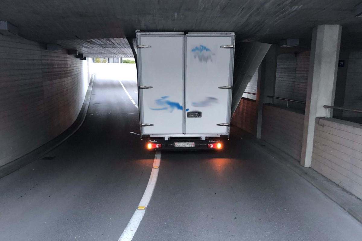 Am Montagabend, 6. September 2021, kurz vor 19.30 Uhr, blieb ein Lieferwagen beim Befahren der Auhof-Unterführung in Lachen stecken.