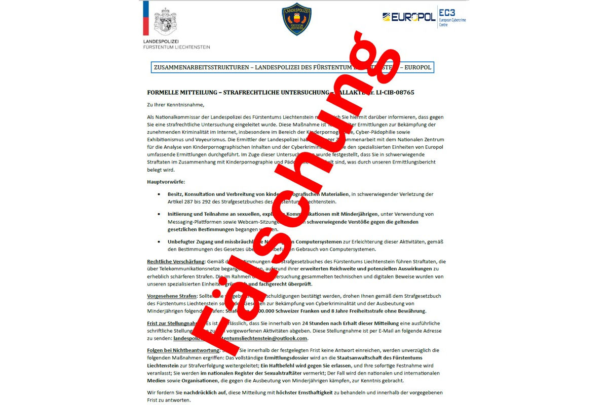 Liechtenstein – Landespolizei warnt vor gefälschten E-Mails