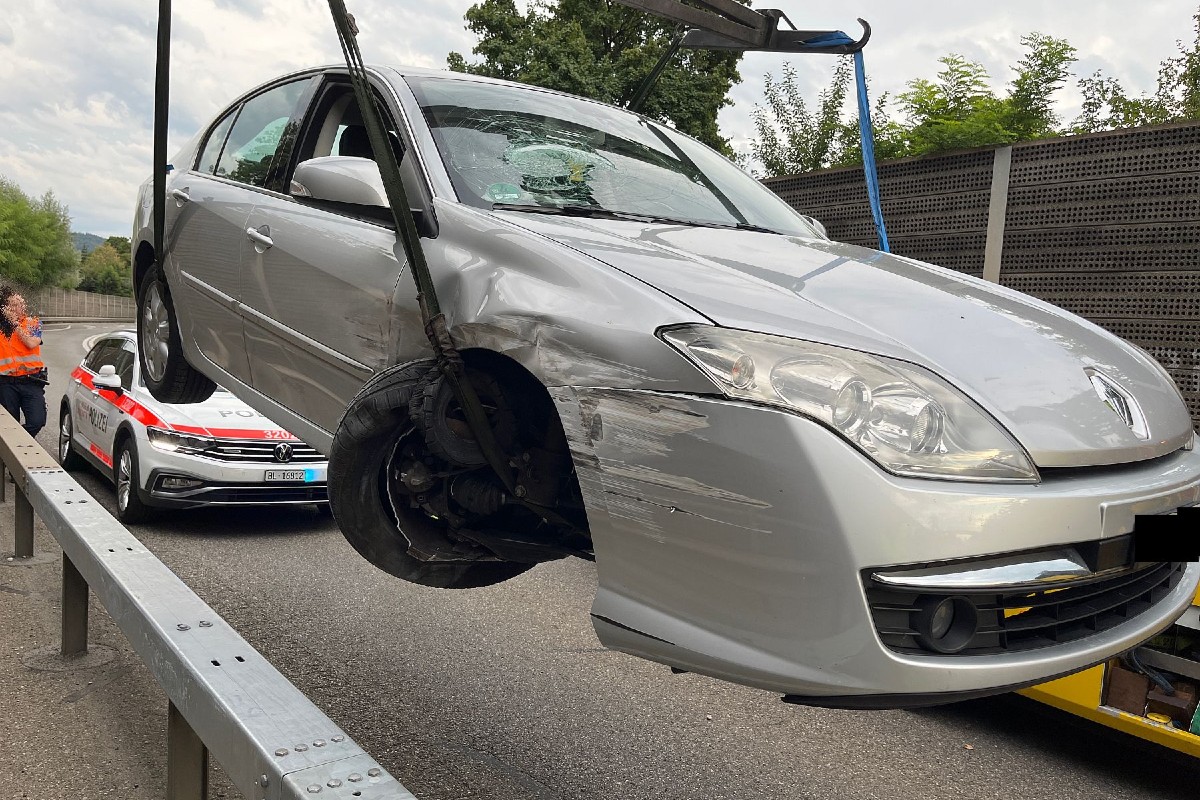 Der beteiligte Personenwagen wurden bei der Kollision massiv beschädigt und musste durch ein
