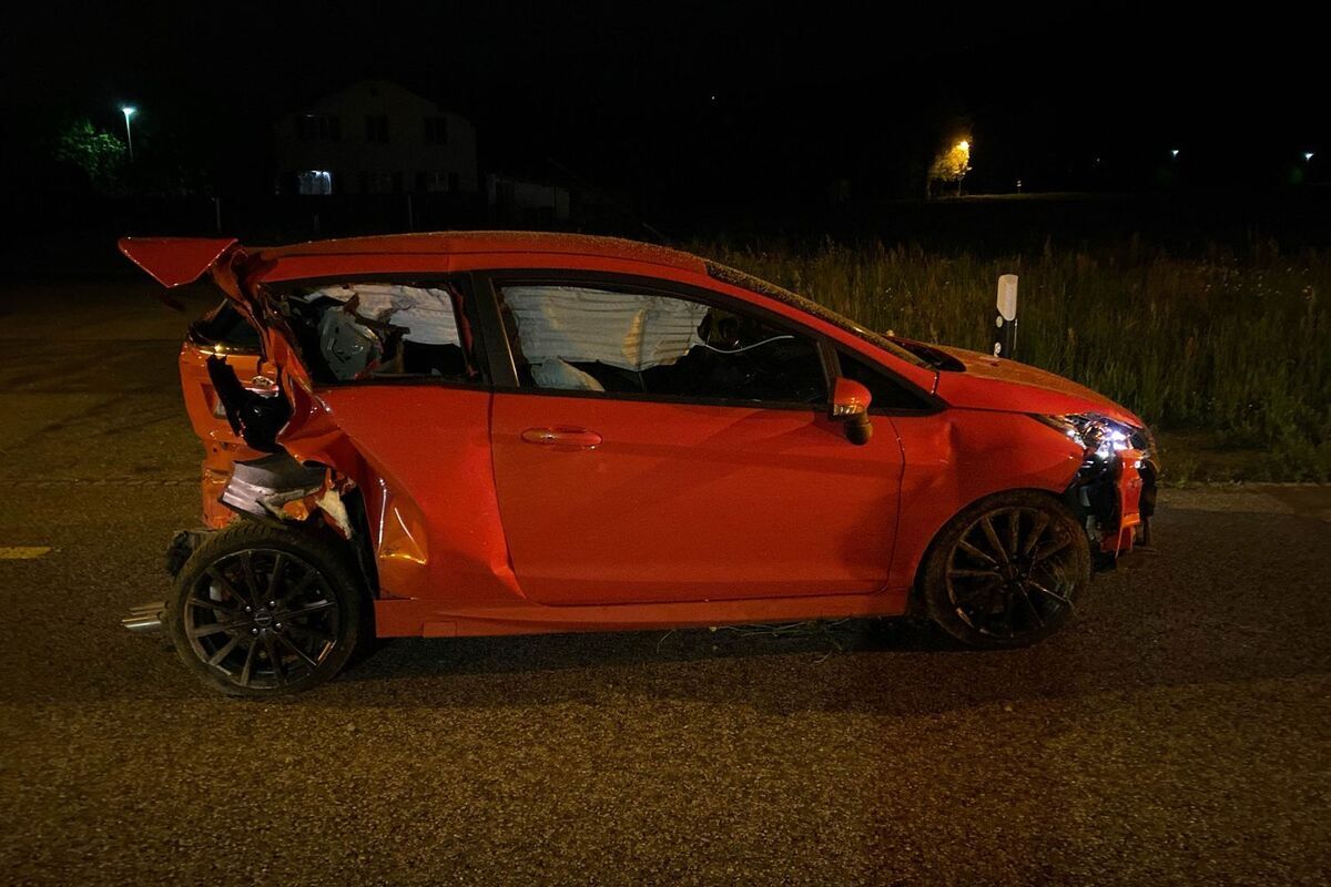 Durch die Wucht des Aufpralls kollidierte das Auto frontal mit einem Baum und kam schliesslich auf der Gegenfahrbahn zum Stillstand. Der Lieferwagenlenker kam von der Fahrbahn ab, fuhr eine Böschung runter, durchbrach einen Zaun und kam schliesslich auf der Seite liegend zum Stillstand.