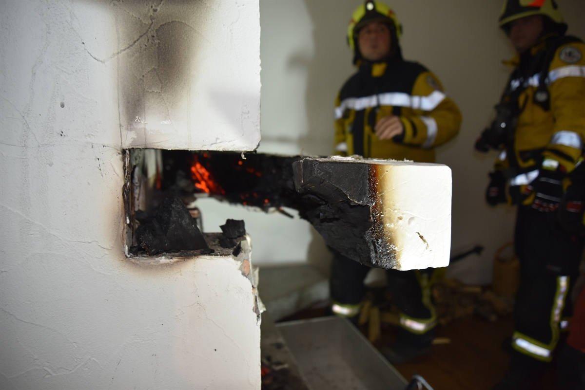 Kurz nach Mitternacht wurden die Bewohner eines Einfamilienhauses von Rauch geweckt. Sie stellten fest, dass der Holzbalken beim Cheminée glühte und alarmierten die Feuerwehr. 27 Feuerwehrleute rückten vor Ort aus und löschten den Brand. Weiter musste der Rauch aus dem Gebäude geblasen werden.