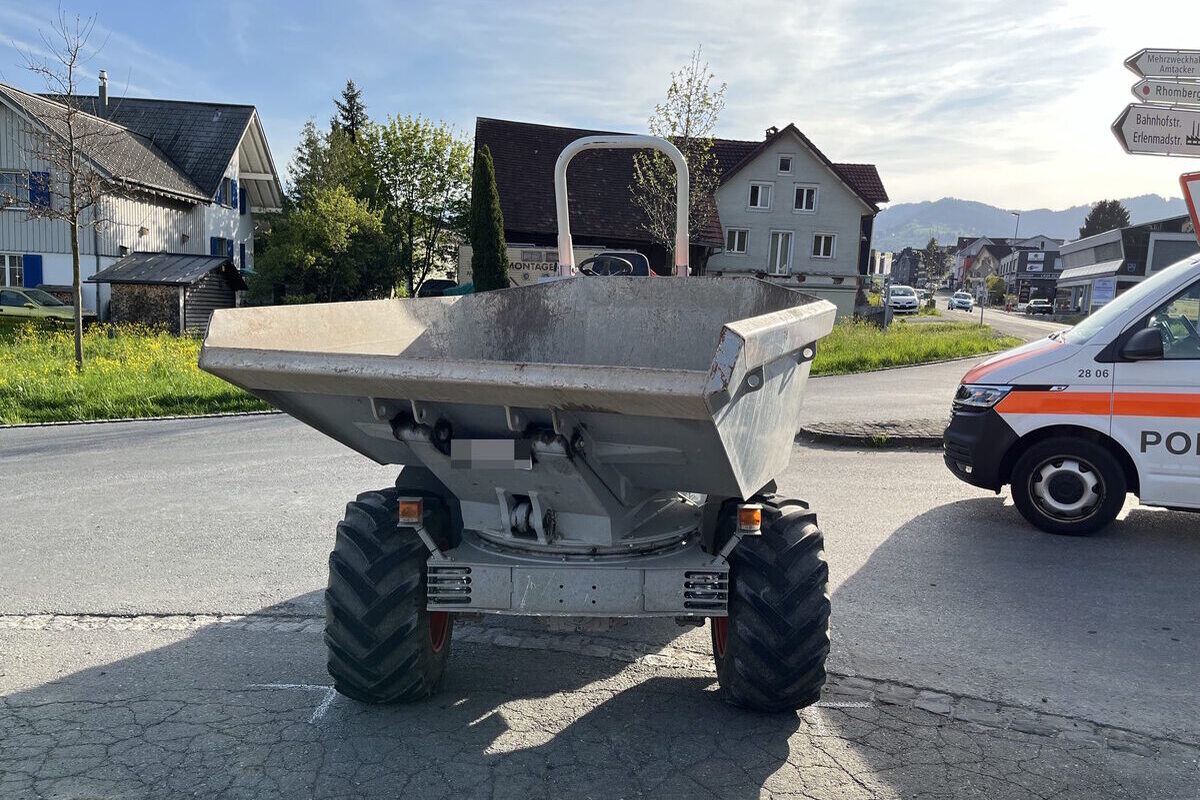 Ein 49-jähriger Mann fuhr mit einem Arbeitskarren (Dumper) auf der Staatsstrasse von Balgach her in Richtung Altstätten. Er beabsichtigte in die Bahnhofstrasse abzubiegen. Dabei touchierte der Dumper die Verkehrsinsel. Der nicht angegurtete Fahrer fiel vom Fahrzeug. Mit unbestimmten Verletzungen wurde er durch die Rettung ins Spital gebracht.