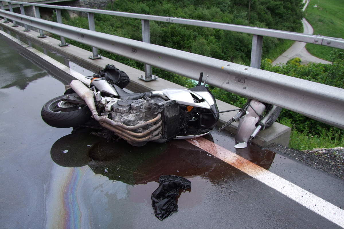 Der 48-jährige Deutsche fuhr mit einer Motorradgruppe von Livigno Richtung Deutschland. In Sent fuhr er nach eigenen Angaben bei der Örtlichkeit Punt San Valentin zu schnell in eine Linkskurve. Er glitt auf der nassen Fahrbahn aus und kollidierte mit der rechtsseitigen Leitplanke.