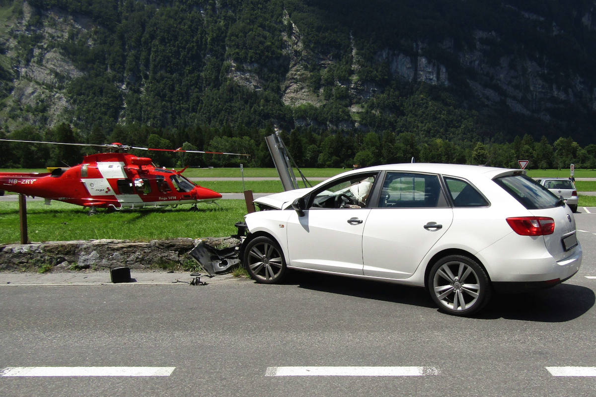 Die Lenkerin eines Personenwagens war in Fahrtrichtung Netstal unterwegs. In der Linkskurve vor der Einfahrt zum Flugplatz fuhr die 22-Jährige heute geradeaus und kollidierte in der Folge mit der Strassenmauer. Beim Unfall zog sich die Lenkerin eine Rückenverletzung zu.