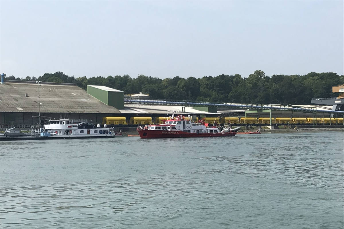 Im Einsatz stehen die Schweizerischen Rheinhäfen, Feuerwehr und Polizei Basel-Landschaft