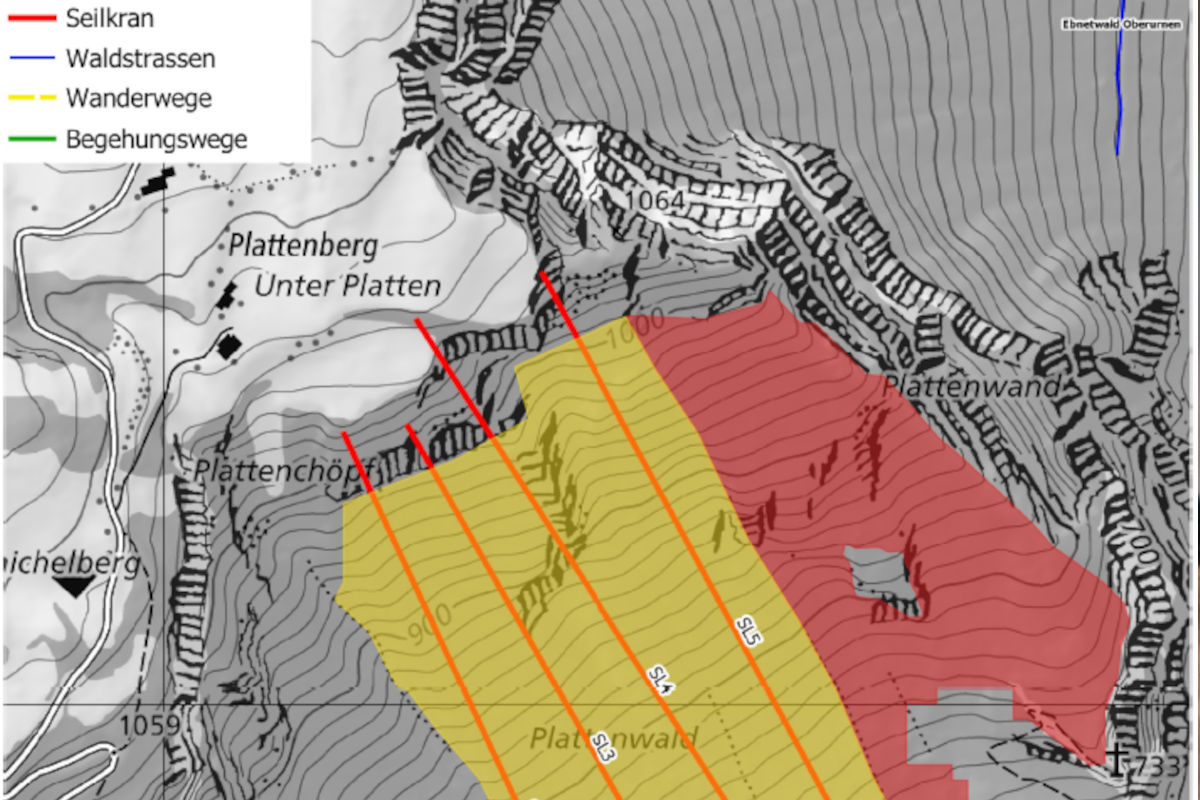 Das Forstpersonal der Gemeinde Glarus Nord hat im Plattenwald mit Installations- und Holzereiarbeiten begonnen. Diese dienen der Pflege des Schutzwaldes und stellen sicher, dass dieser seine wichtigen Funktionen auch in Zukunft erfüllen kann. Je nach Witterung dauern die Arbeiten voraussichtlich von 18. November 2025 bis Februar 2026.