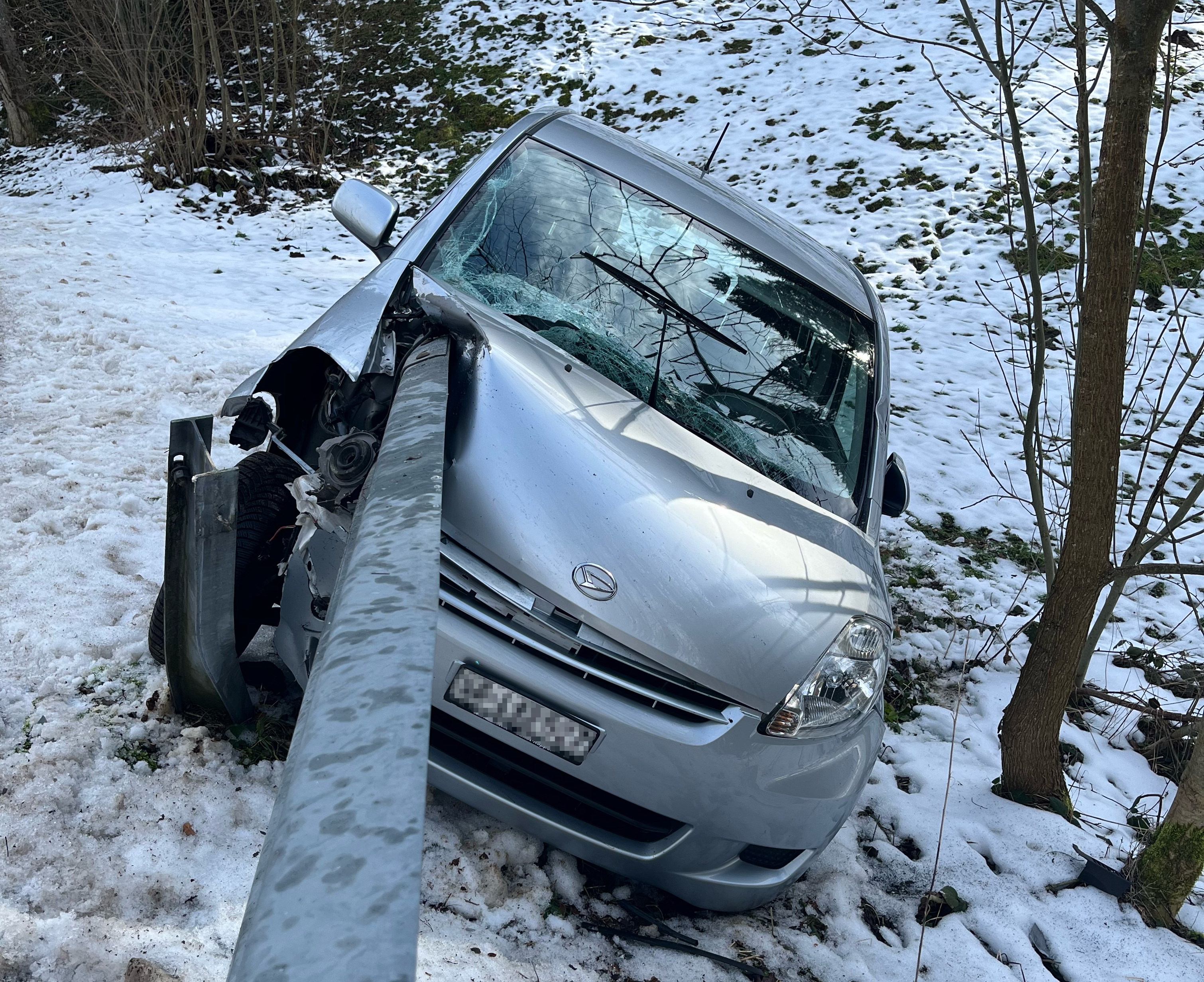 Am Freitag, (03.02.2023), um 11:20 Uhr, ist es auf der Ebersolerstrasse zu einem Selbstunfall gekommen. Die 70-jährige Fahrerin verletzte sich dabei leicht.