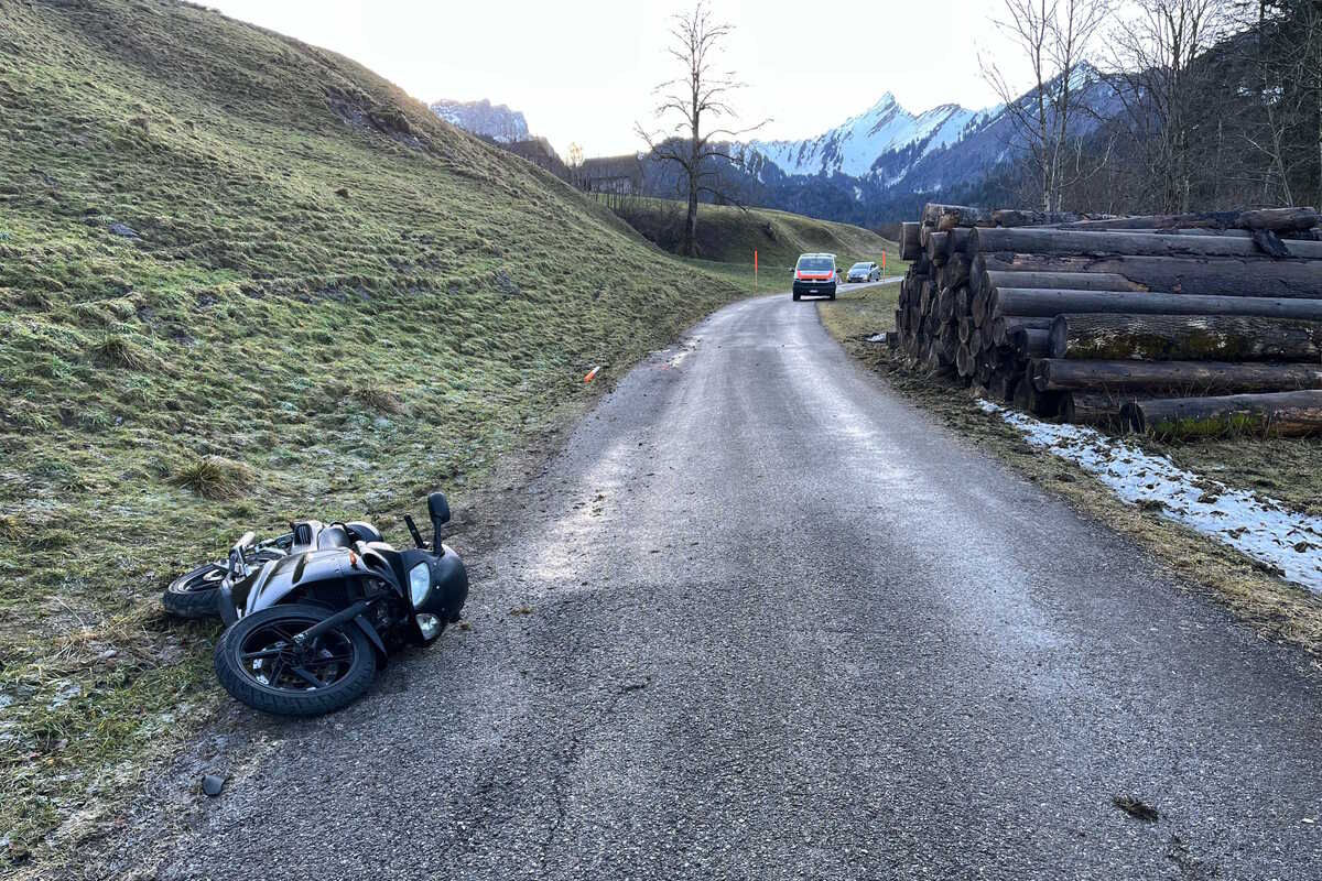 Am Samstag (27.01.2024), um 15:55 Uhr, stürzte ein 17-Jähriger auf der Strasse "Laad" mit seinem Motorrad. Er verletzte sich dabei leicht und wurde durch den Rettungsdienst ins Spital gebracht.