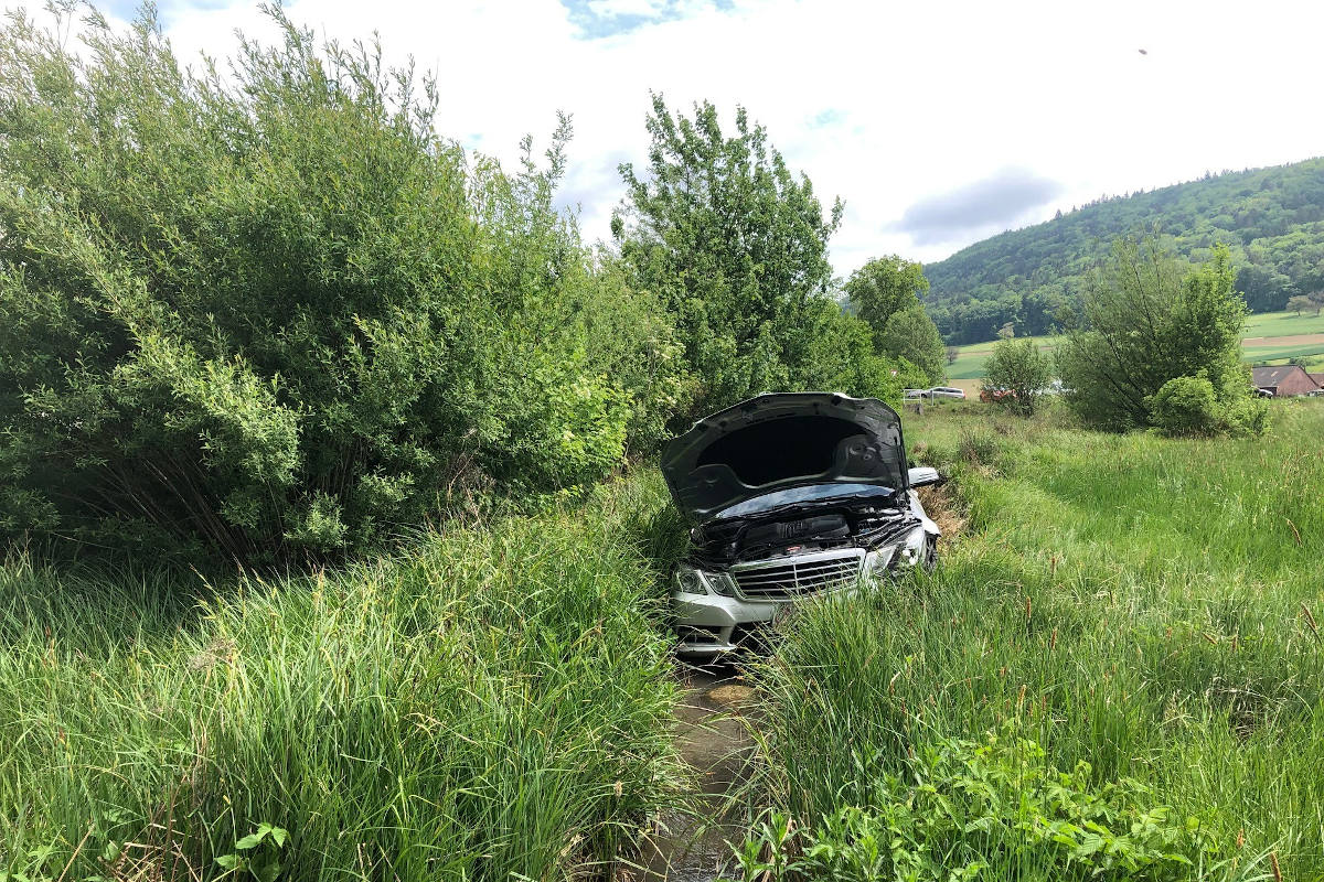 Am Freitagnachmittag (13.05.2022) kam es auf der H13 bei Neunkirch zu einem Verkehrsunfall, wobei ein Auto in einem Bach zum Stillstand. Personen sind bei diesem Unfall keine verletzt worden.