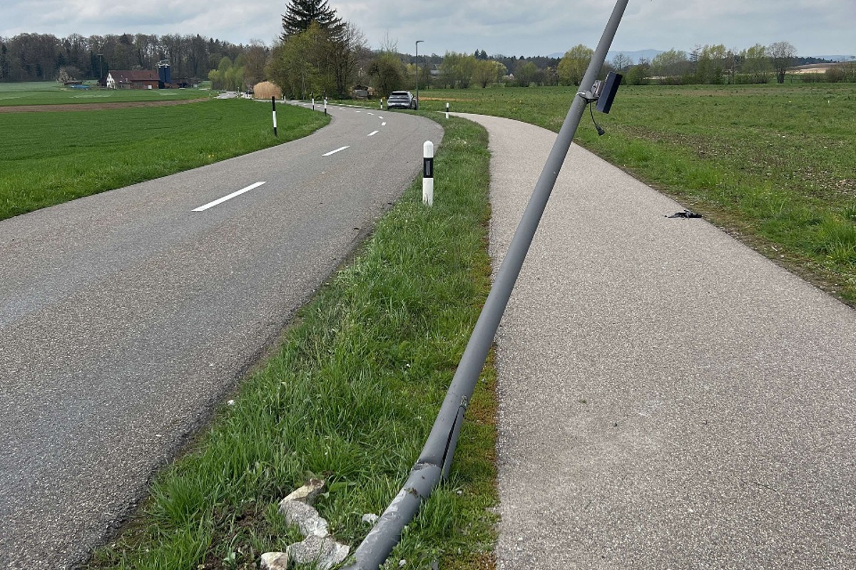 Die zu Boden gedrückte Strassenlampe wurde komplett zerstört. Auch am Auto entstand beträchtlicher Schaden. Immerhin wurde niemand verletzt. Die Kantonspolizei verzeigte den Unfallverursacher an die Staatsanwaltschaft.