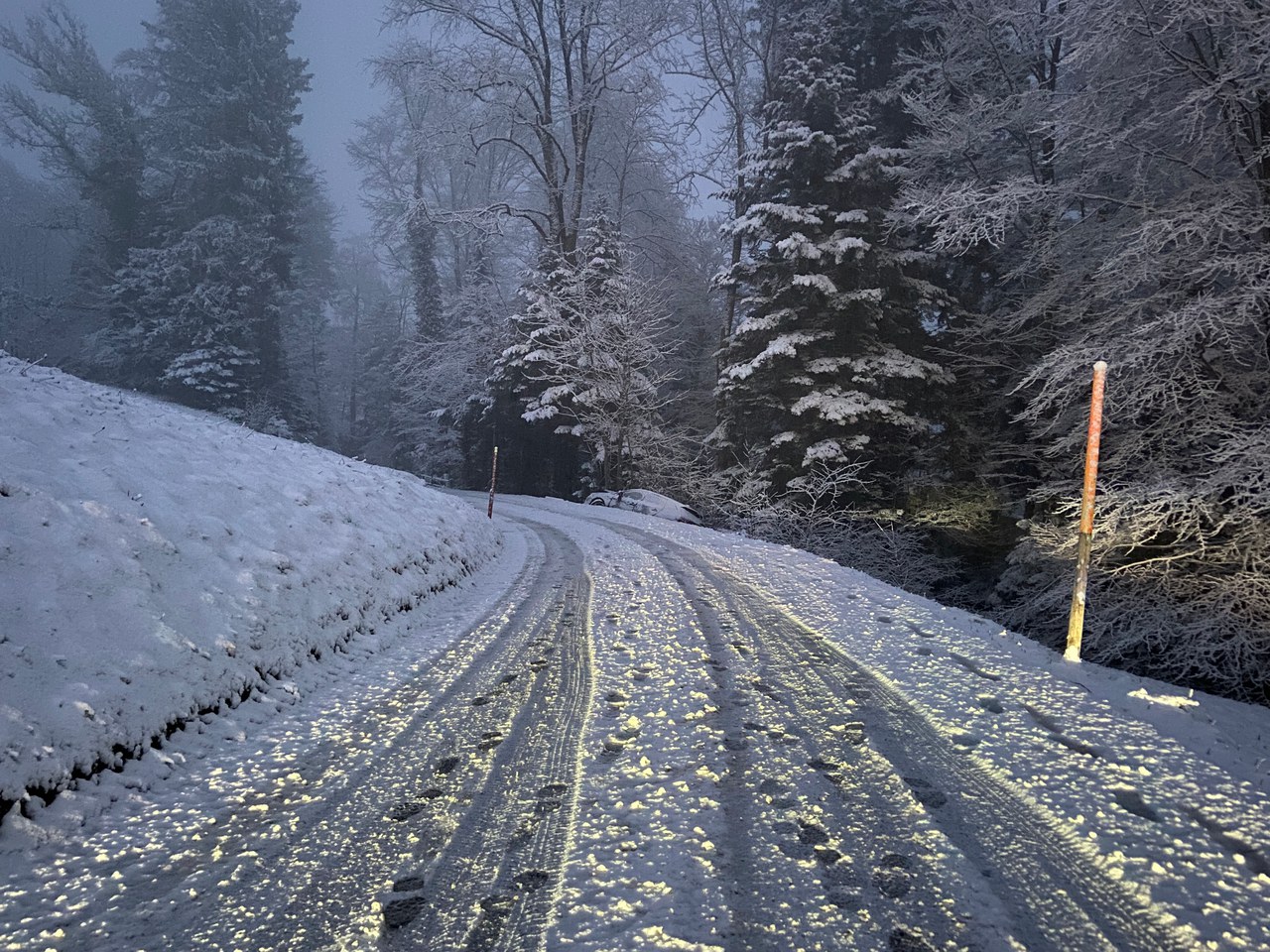 Oberägeri ZG – Selbstunfall auf schneebedeckter Strasse