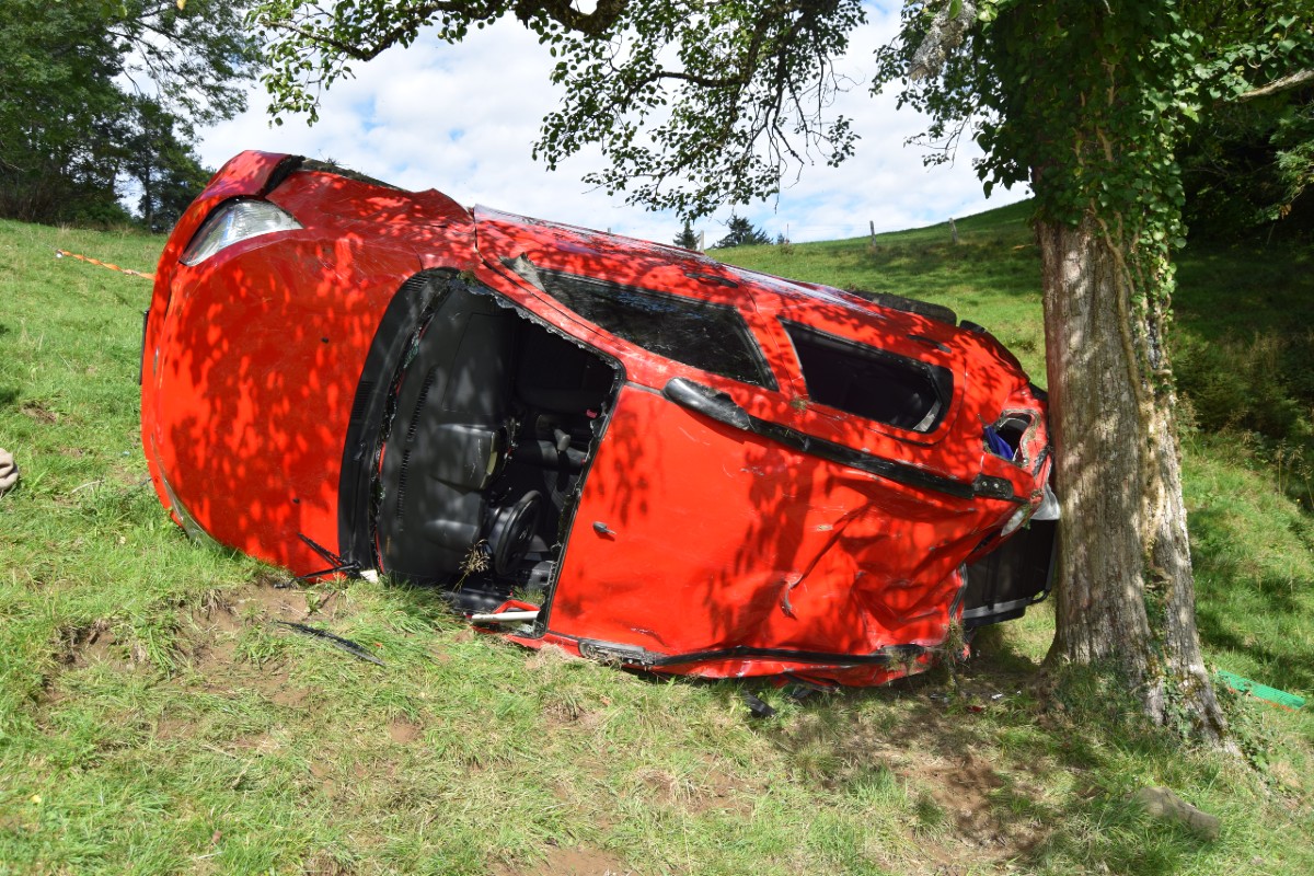 Am frühen Sonntagnachmittag (11.09.2022) fuhr eine 62-jährige Autolenkerin eine steile Kiesstrasse abwärts. Dabei kollidierte sie mit einem Wegweiser und geriet danach über den Fahrbahnrand hinaus in einen steilen Abhang. Dort überschlug es das Auto mehrmals, bis es an einem Baum zum Stillstand kam.