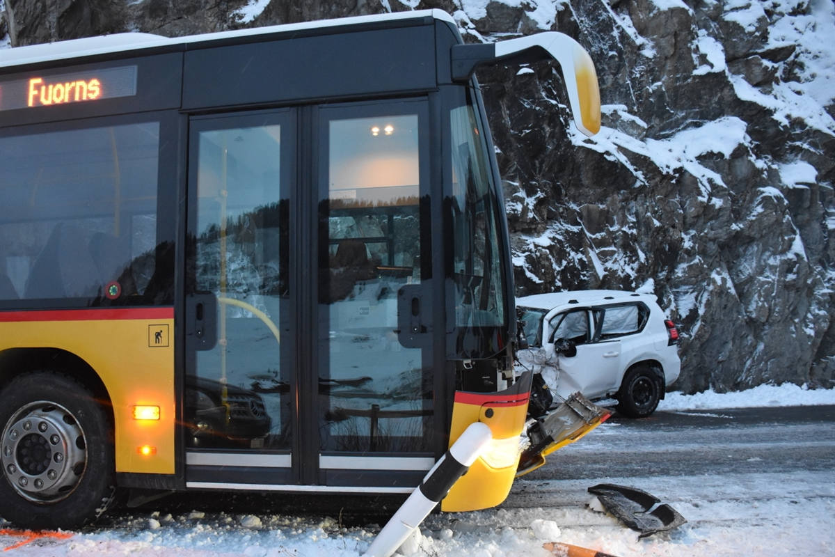 Um 06.15 Uhr fuhr ein 20-jähriger Automobilist auf der Lukmanierstrasse vom Pass kommend in Richtung Disentis. Nach Pardé geriet sein Auto in einer Rechtskurve auf die Gegenfahrspur und kollidierte mit einem Postauto aus der Gegenrichtung.