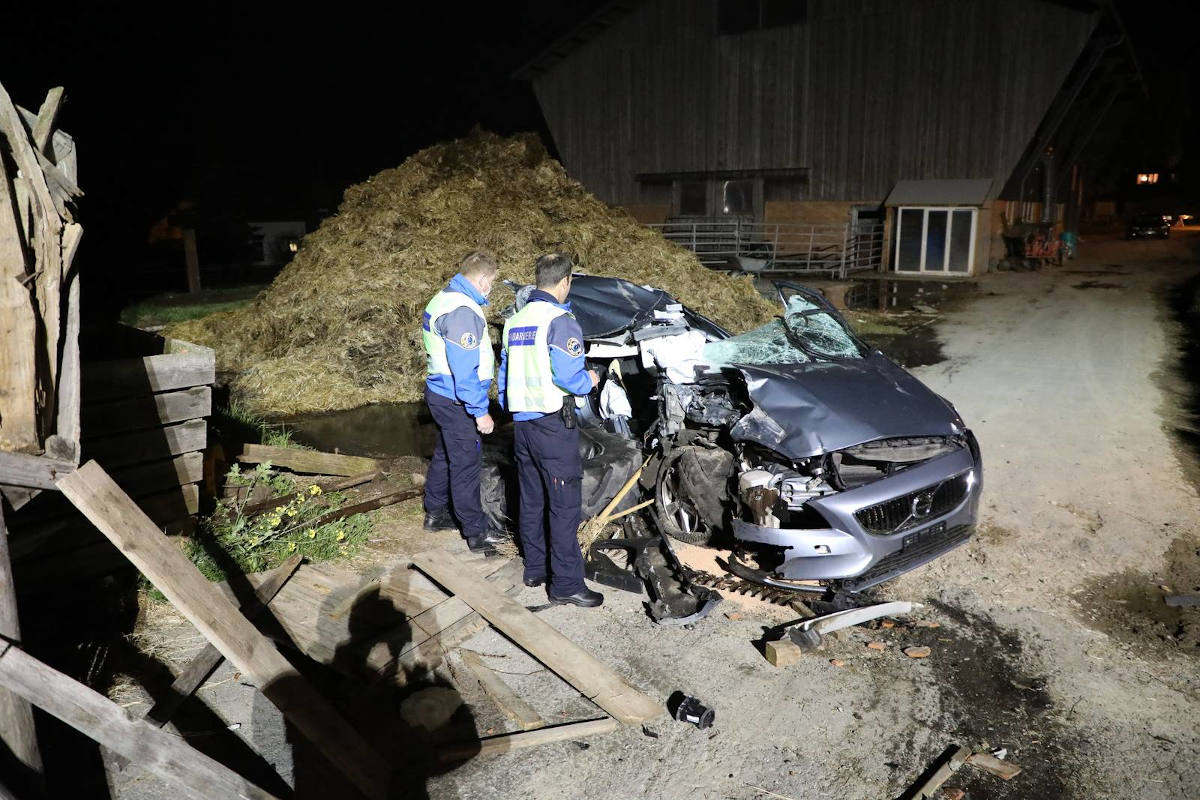 Am Sonntag, 23. Mai 2021, gegen 22.40 Uhr, wurde die Kantonspolizei über einen schweren Unfall mit einem Personenkraftwagen in Peney-le-Jorat an der Route des Paysans (RC 542D) informiert. Nach den ersten Angaben fuhr der Fahrer, ein 33-jähriger Schweizer, der in der Region lebt, sein Auto vom Chalet à Gobet in Richtung Peney-le-Jorat. Am Eingang einer Kurve nach rechts mit grossem Radius und aus einem unbestimmten Grund liess er sein Fahrzeug abweichen, verliess die Fahrbahn nach seiner Fahrtrichtung nach links, rollte auf einem Feld, bevor er auf einen landwirtschaftlichen Anhänger stiess und fertig wurde sein Rennen vor einem Hangar.