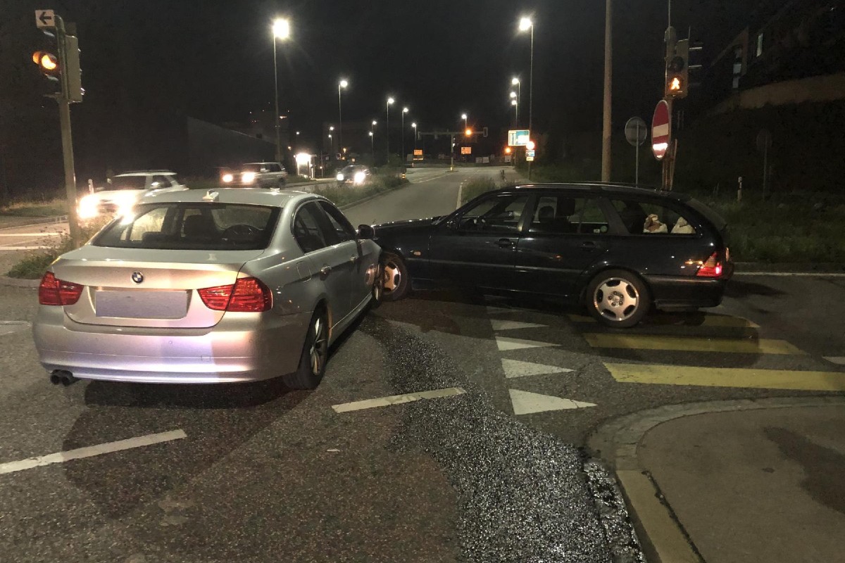 In der Salinenstrasse in Pratteln BL, im Bereiche der Ausfahrt A2/Salinenstrasse, ereignete sich am Donnerstagabend, 25. Juni 2020, kurz vor 23.00 Uhr, eine Kollision zwischen zwei Personenwagen. Personen wurden dabei keine verletzt.