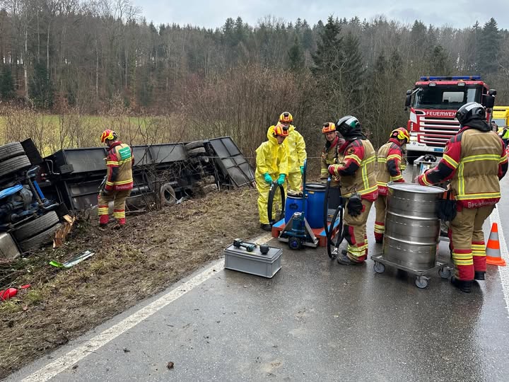 Am Donnerstag, 5. Februar 2026, kam es zwischen Rapperswil und Wengi zu einem Unfall. Ein Lkw kam von der Strasse ab und kippte um. Die beiden Insassen konnten sich selbst befreien.