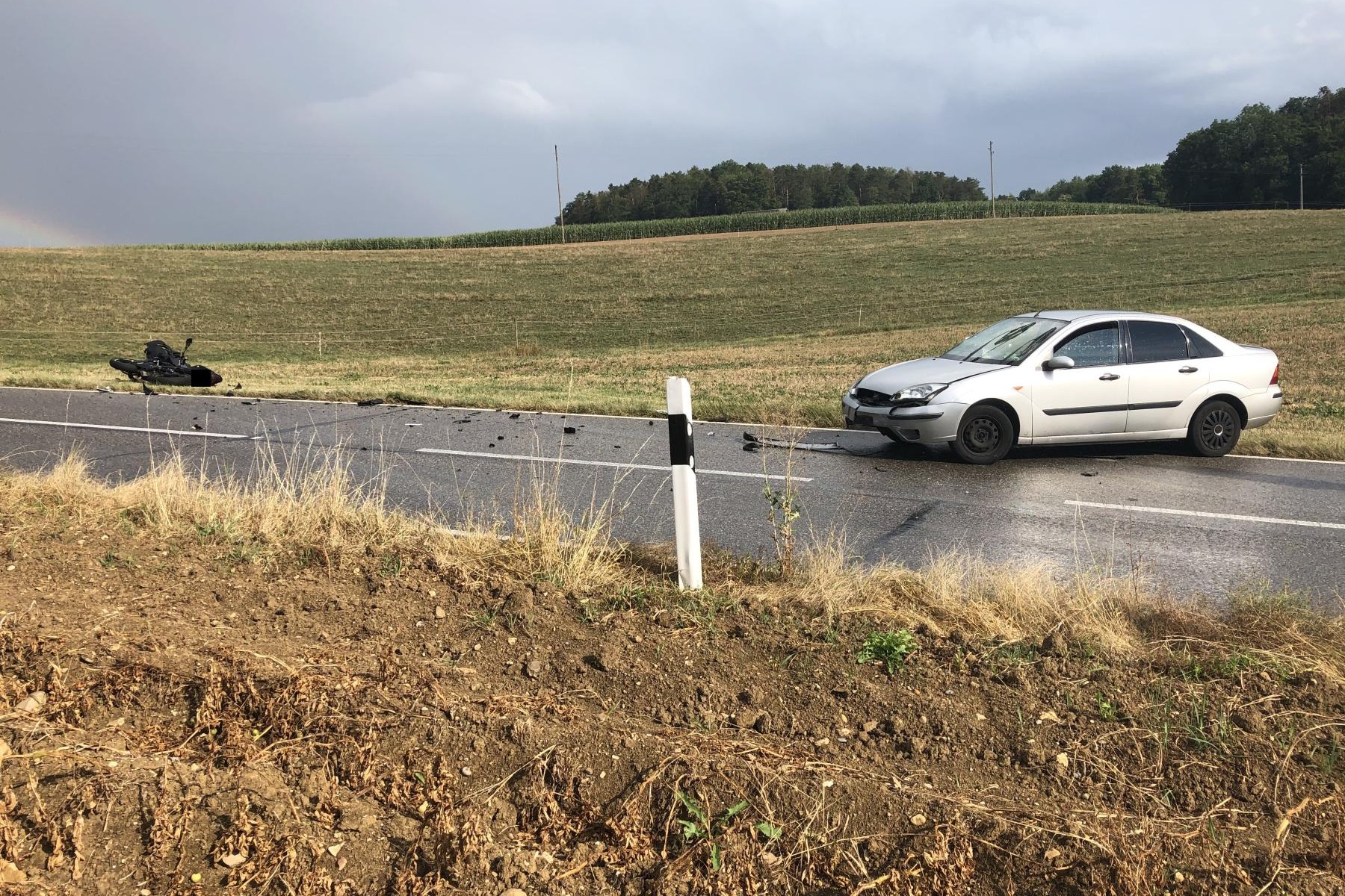 Das Motorrad rutschte folglich auf die Gegenfahrbahn und kollidierte frontal mit einem entgegenkommenden Personenwagen.