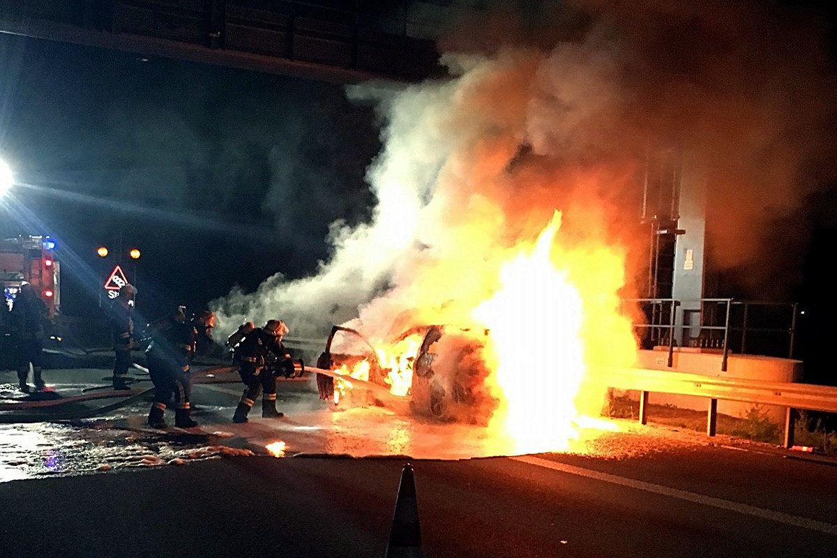 Rheinhessen HE - Audi geht auf der A61 in Flammen auf