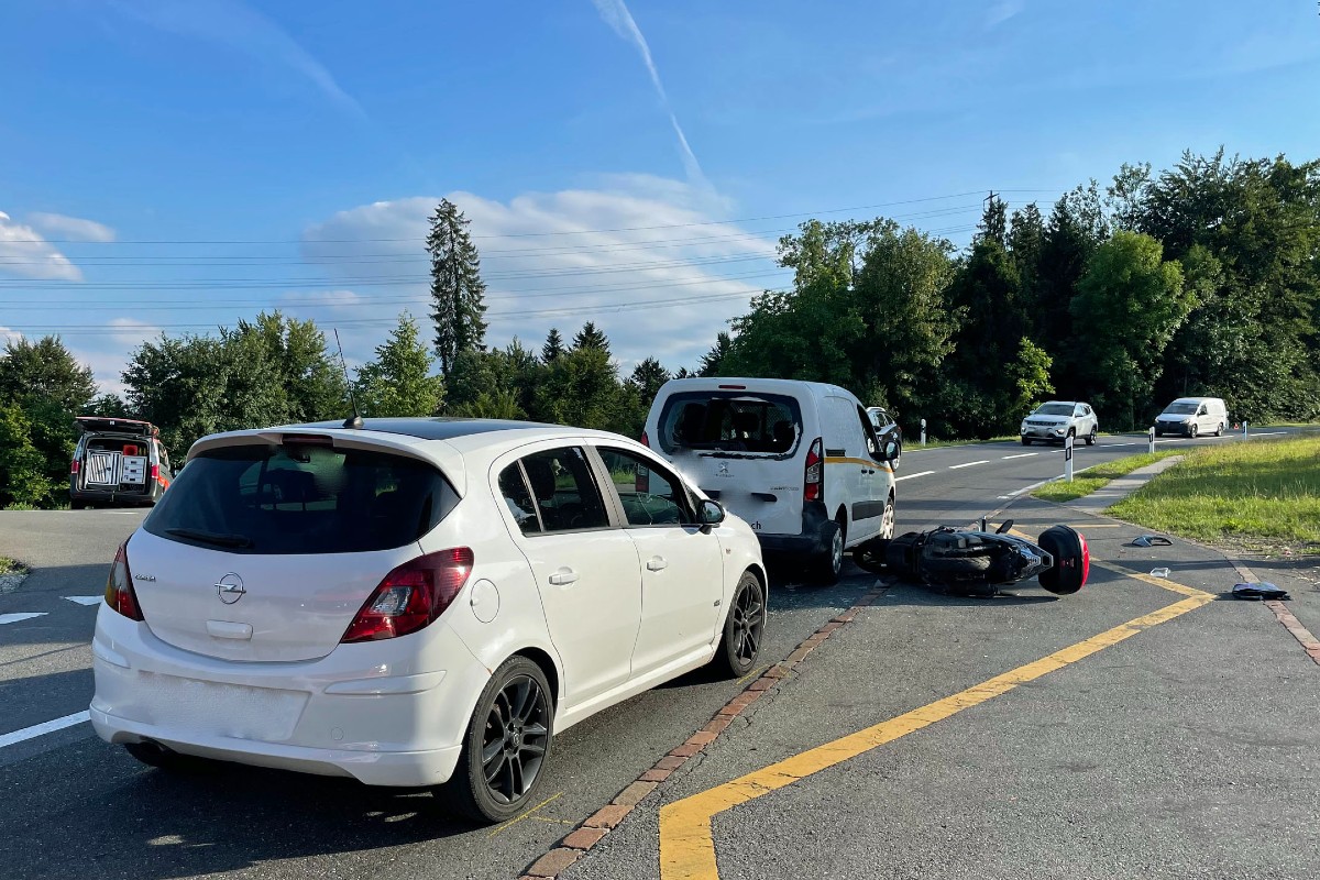 Die nachfolgende Motorradfahrerin verlangsamte die Fahrt ebenfalls. Der nachfolgende Personenwagen bemerkte dies zu spät und prallt mit der Front gegen das Motorrad. Dieses wurde durch den Anprall gegen das Heck des Lieferwagens geschoben. Die Motorradfahrerin verletzte sich beim Unfall und wurde durch den Rettungsdienst 144 ins Spital gefahren.