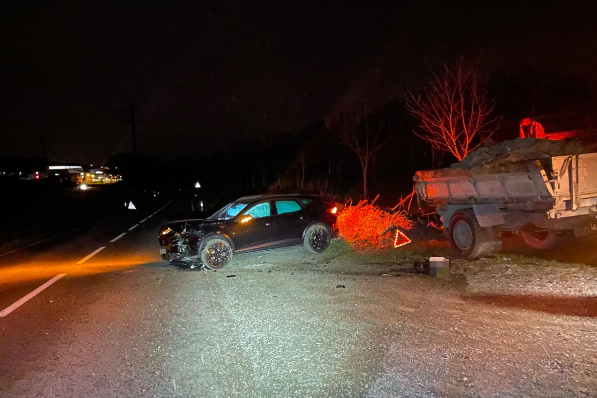 Dabei verlor er die Kontrolle über sein Fahrzeug, kam rechts von der Strasse ab und prallte in einen abgestellten Anhänger. Beim Unfall wurde niemand verletzt, es entstand Sachschaden von einigen zehntausend Franken.