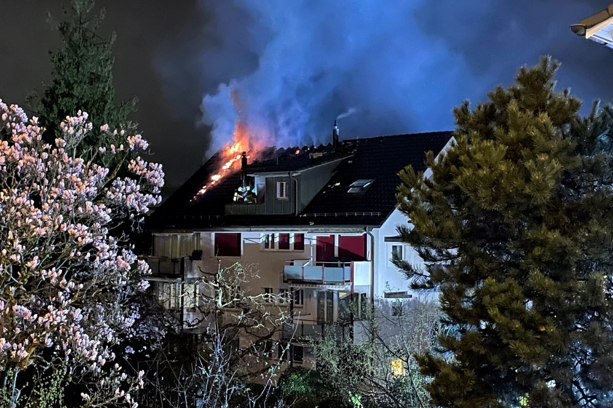 Bei einem Dachstockbrand in einem Mehrfamilienhaus ist am Donnerstagabend (31.3.2022) in Rüschlikon grosser Sachschaden entstanden. Personen wurden keine verletzt.