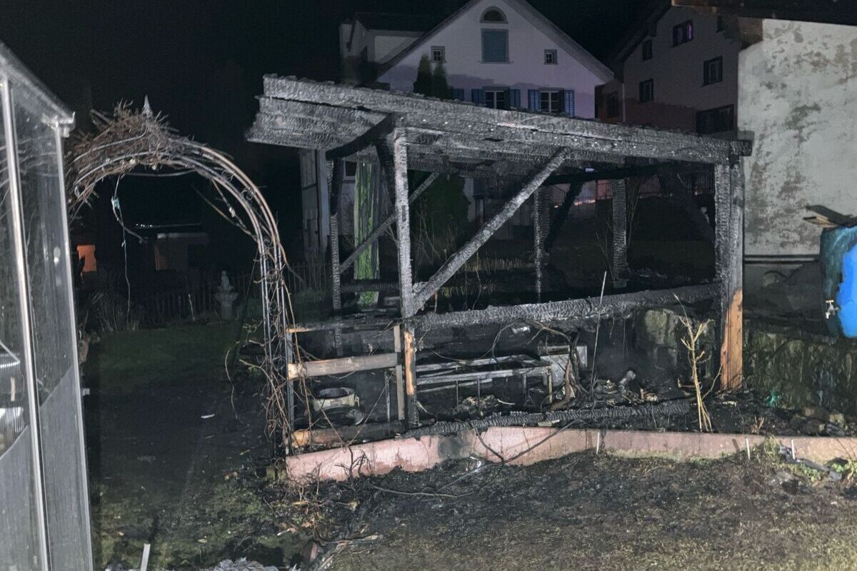 Am Samstag 16.03.2024, ca. 23.45 Uhr, hat in Rüti an der Dorfstrasse ein Gartenunterstand gebrannt.