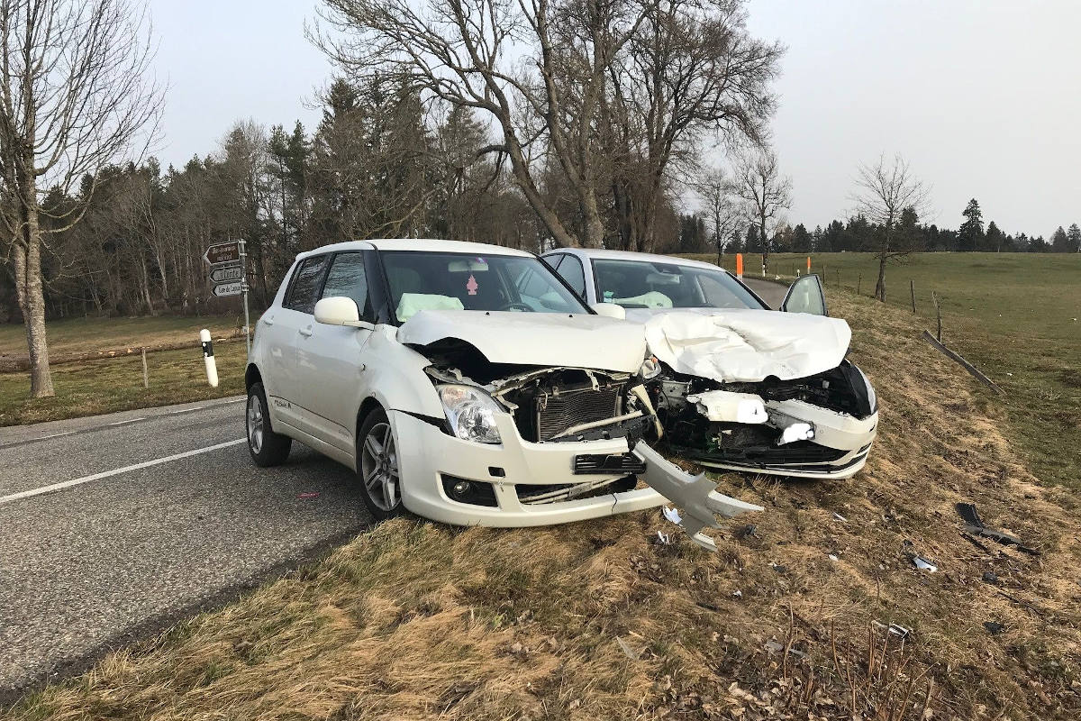 Kollision an einer Kreuzung bei Saulcy (Bildquelle: Kantonspolizei Jura)