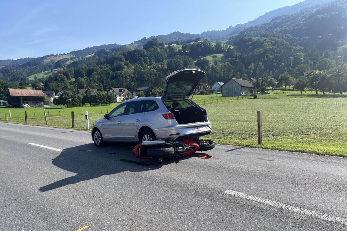 Eine 32-jährige Frau fuhr mit ihrem Auto auf der Gasterstrasse von Weesen in Richtung Kaltbrunn. Gleichzeitig fuhr ein 77-jähriger Mann mit seinem Motorrad hinter der 32-Jährigen in die gleiche Richtung. Die 32-Jährige musste ihr Fahrzeug verkehrsbedingt abbremsen.