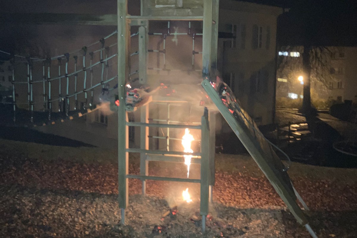 Eine unbekannte Täterschaft zündete mutmasslich am gestrigen Mittwochabend zu einem unbekannten Zeitpunkt den Kletterturm auf dem Spielplatz des Kindergartens Schwanden an.