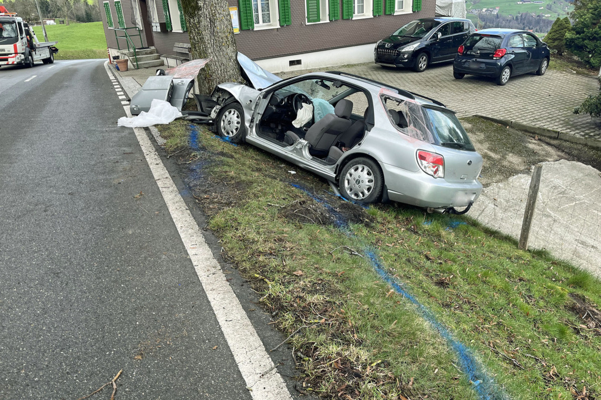 Am Montagmorgen geriet ein Auto in Schwarzenberg rechts von der Strasse und prallte frontal gegen einen Baum. Der eingeklemmte Autofahrer wurde durch die Feuerwehr befreit und durch den Rettungsdienst ins Spital gefahren.