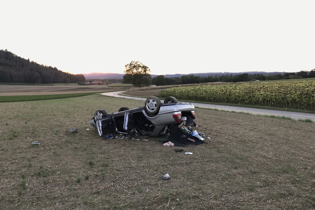 Am Donnerstagabend (20.08.2020) um ca. 19:10 Uhr ereignete sich bei Buchberg / Steinenkreuz ein Alleinunfall. Eine 25-jährige Personenwagenlenkerin fuhr dabei aus Richtung Eglisau kommend über die Buchbergstrasse in Richtung Buchberg. In einer Linkskurve verlor sie die Herrschaft über ihren Mercedes, wobei dieser in der Folge über die Fahrbahn schleuderte, bis er auf der rechten Strassenseite mit einem kleinen Wiesenbord kollidierte. Durch die Wucht des Aufpralls überschlug sich das Fahrzeug und kam auf dem Fahrzeugdach zu liegen.
