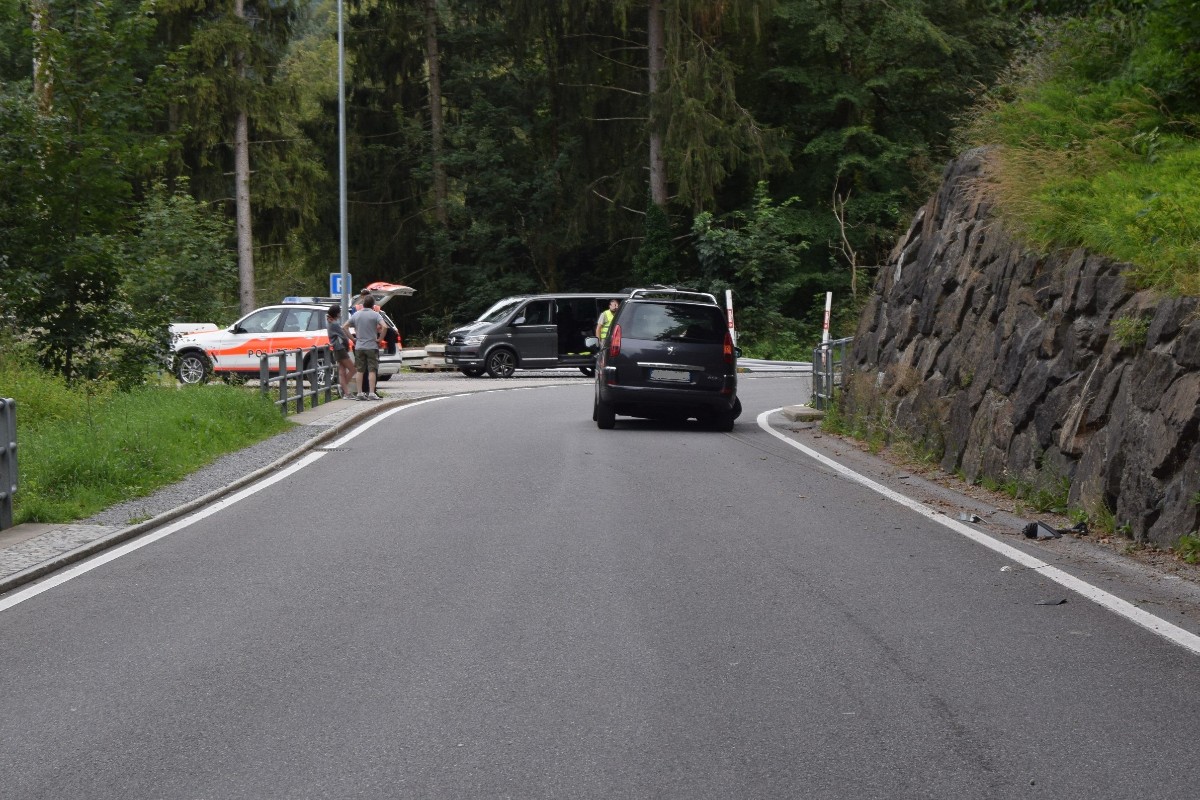 Alle vier Autoinsassen blieben unverletzt. Am Personenwagen entstand beträchtlicher Sachschaden im Bereich der Vorderachse, weshalb das Fahrzeug nicht mehr fahrbar war.