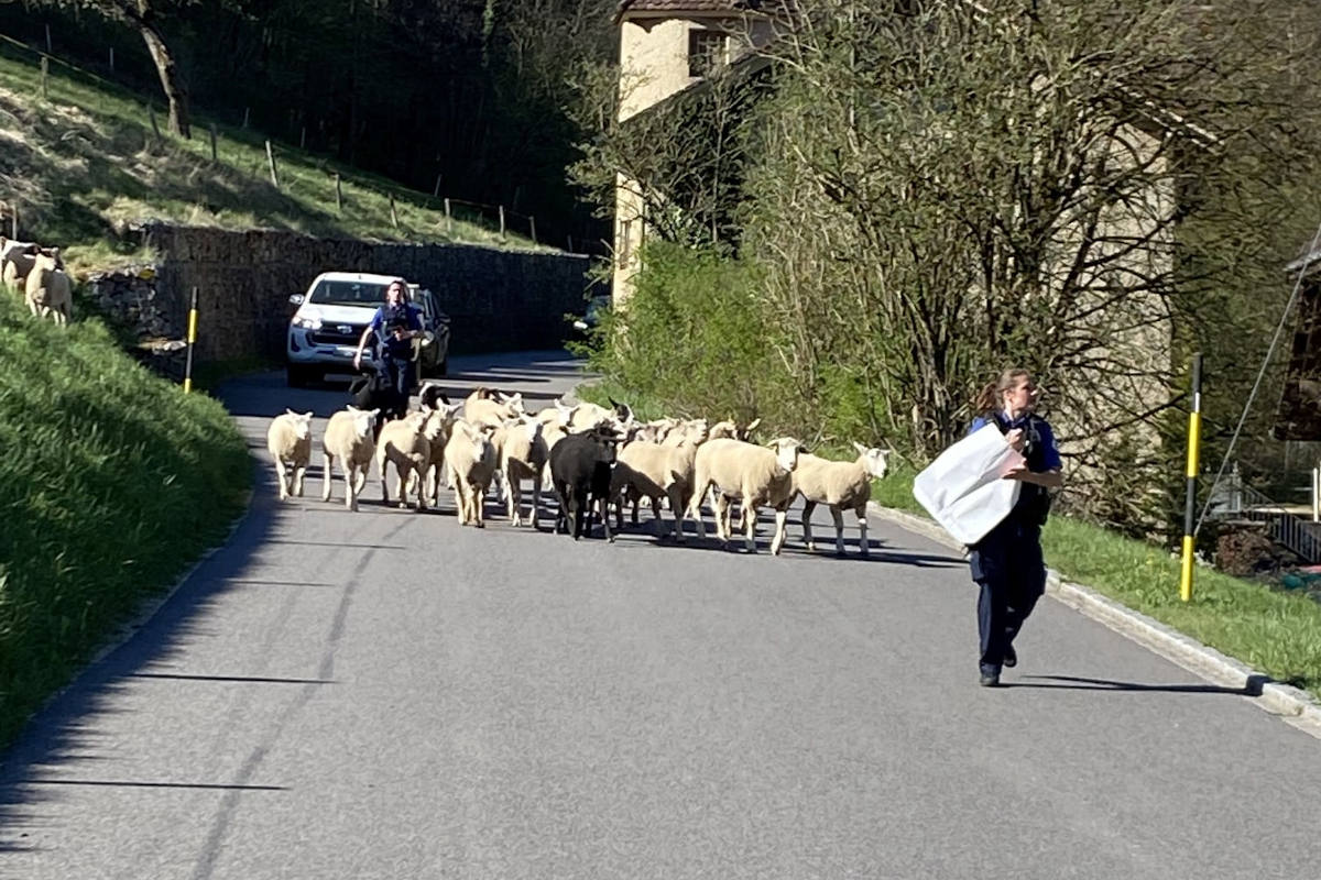 Heute Vormittag büxte in Seltisberg eine Schafherde aus und wollte gemütlich ihren Ostermontags-Spaziergang auf der Strasse in Richtung Orismühle "absolvieren".