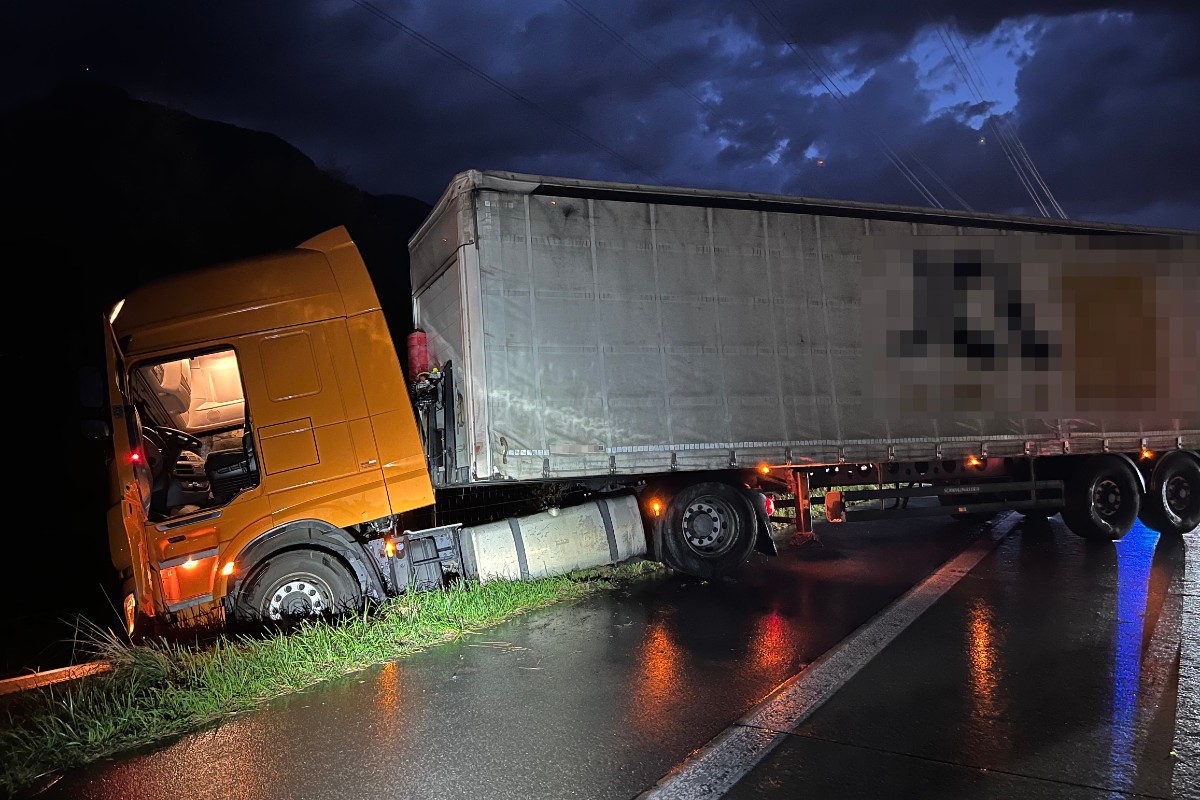 Ein 46-jähriger Mann fuhr mit seinem Sattelschlepper auf der Autobahn A13 von Oberriet Richtung Sennwald. Bei starkem Regen verlor der 46-Jährige die Kontrolle über seinen Sattelschlepper und dieser geriet ins Schleudern. Er prallte zuerst gegen die Mittelleitplanke, von wo der Sattelschleper nach rechts abgewiesen wurde und die Fahrbahn überquerte. Anschliessend prallte der Sattelschlepper in die Randleitplanke und kam im abfallenden Wiesenbord zum Stillstand, während der Auflieger in die Fahrbahn ragte.