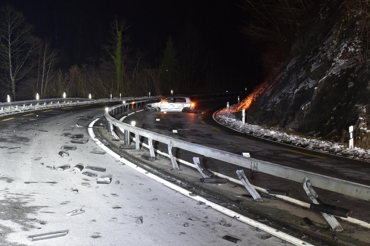Das Gefährt prallte in der Folge heftig gegen die Mittelleitplanke und kam stark beschädigt auf der Fahrbahn zum Stillstand. Während der Fahrzeuglenker und der 21-jährige Mitfahrer leicht verletzt wurden, blieb die 18-jährige Begleitperson unverletzt.